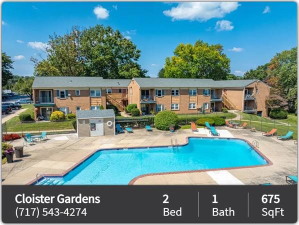 More Information: Cloister Gardens is a charming garden apartment community that offers a variety of living spaces designed to meet your every need! We provide an array of modern amenities for your convenience, with spacious, well-designed interiors, and lush, mature landscaping. We are located in the heart of Ephrata within walking distance to shopping, restaurants, hospitals, and banking. Cloister Gardens also provides quick access to Lancaster and Reading. All of our units come furnished with a refrigerator, stove and garbage disposal. Select apartments include washers, dryers and dishwashers.