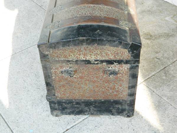Nice medium sized dome top trunk circa 1870 - 1890 all original with original tray. 28 x 16 x 19. Has both front latches. Has a stay but one ind is detached.