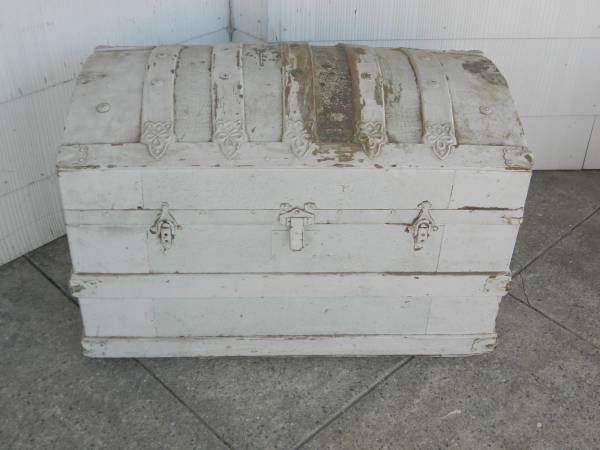 30 in x 17 in x 19 inches. There ares some nice features under all of this old paint. Sturdy condition. Great project piece.