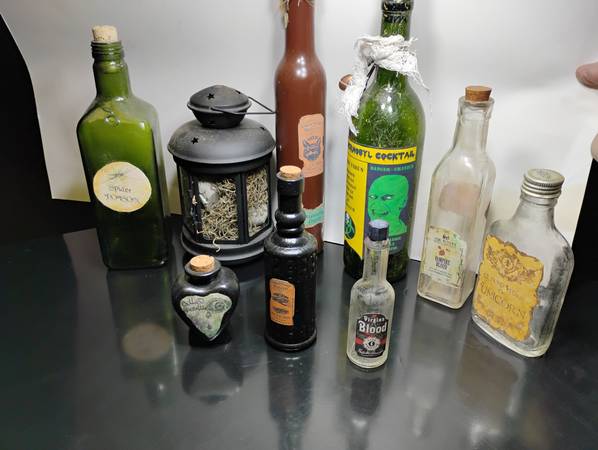 Old antique looking scary Halloween bottles & vases, $25 for all.