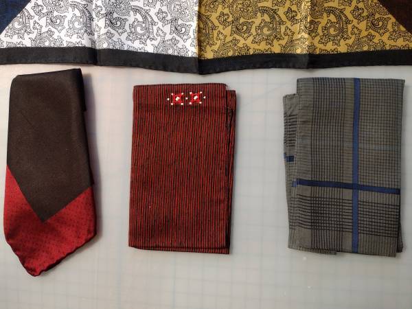 - 4 Vintage Pocket Squares - The silk multi design one is 17" sq. All 4 for $10