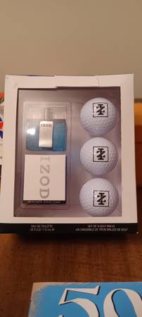 INCLUDES TRIVIA, JOKE BOOKS, MUG WITH PUTTER AND COLOGNE AND BALLS.