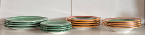 Spirale Green plates 4 are 8 inch and 4 are 12 inch in diameter