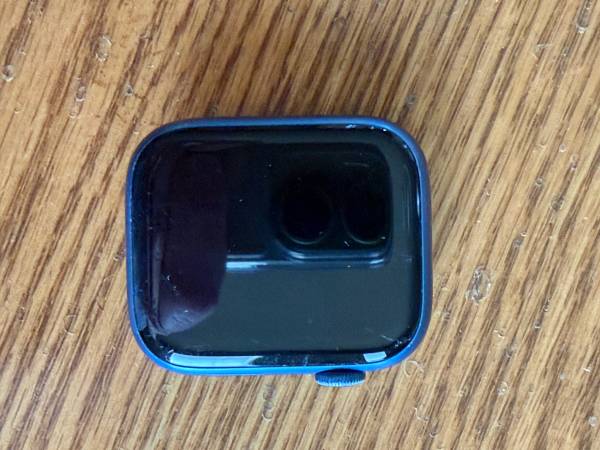 Apple Watch Series 7 45mm blue case with 2 Nike Sport Loop bands (one white/black and one black/blue) and charging cable in good condition. - $100.