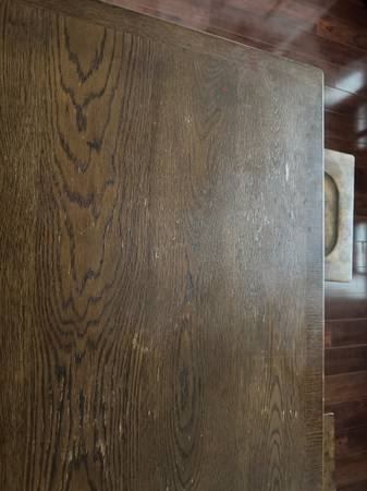 A bistro table with four chairs. Plenty of storage and in good shape but does have some wear. There is some paint markings that can be buffed out.