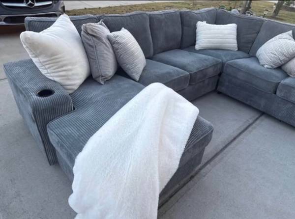 Gray sectional sofa with chaise Storage under chaise Clean Comfortable No stain No smell or torn
