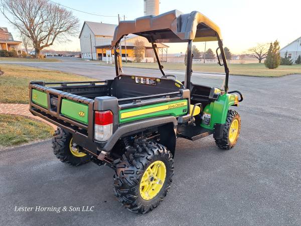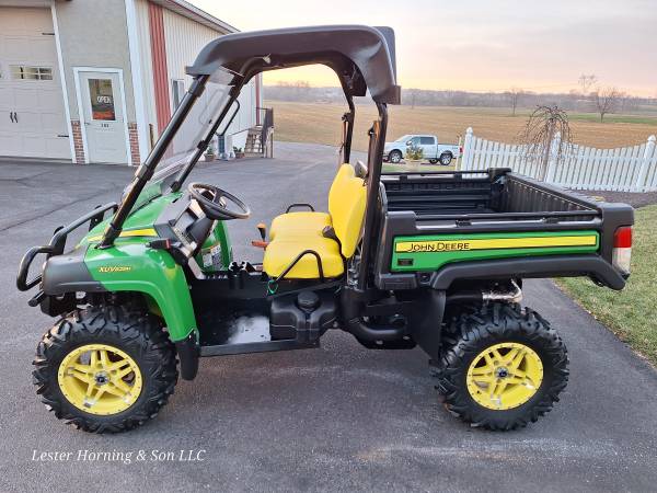 2019 year John Deere 825M XUV Gator , 50 hp. 3 cylinder EFI gas engine w/ 256 hrs. / 1,132 miles w/ top speed at 44 MPH. It has power steering, power bed dump, door curtains, front brush guard, roof, folding windshield, bench seat , factory alloy rims, Maxxis Big Horn radial tires & independent rear suspension. We are a family owned & operated business since 1995 and we deal in high quality , late model , pre-owned JD riding mowers , gators , compact tractors. If you have any other questions please email me or call at the store. Monday-Friday 7:00-5:00 Saturday-by appointment