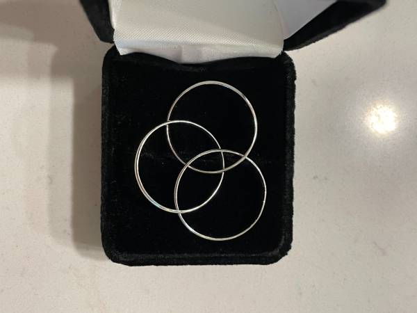 A hand-crafted 925 sterling silver rolling ring that consists of three interlocking bands. Attractive on its own, but also pairs well with other jewelry. Size: 9