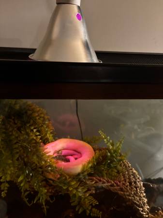 A rescue albino python- comes with tank and everything inside. Also dhp and red light. Rehoming fee to make sure she’s going somewhere she’ll be taken care of and not resold or abandoned.