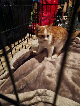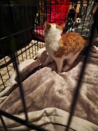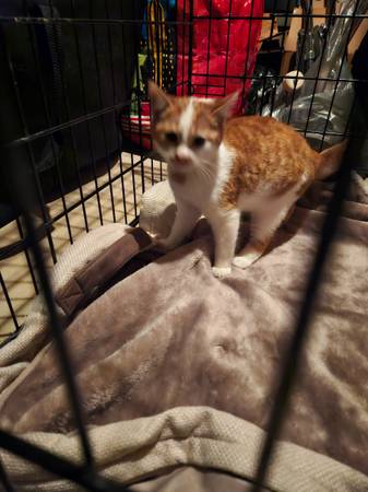 I have 1 male kitten left from a litter of 4. He is yellow & white. He is litter box trained. Approximately 16 weeks old.