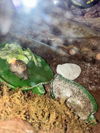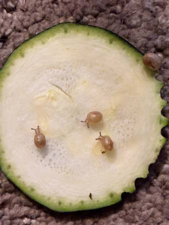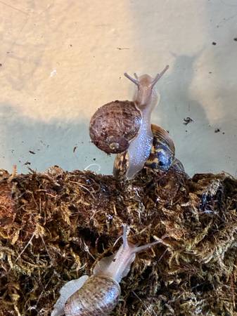I am trying to rehome some of our snails for pets only! They are land brown snails. They are a really easy pet my son loves holding them! They were born in September and now can go to their new homes. They range in size with the largest being about the size and thickness of my thumb nail and tip of my thumb. I also have the original snail posted. All you need to take care of a snail is a small aquarium see-through with a lid, a water bottle to miss them daily, and vegetables or you can buy snail food. You could have multiple snails in a cage if you want more than one and I’m also looking into getting and selling the entire set up ready to start. If you are interested in snails and or their set ups, feel free to text me. That’s the fastest way to get a hold of me. Thank you.