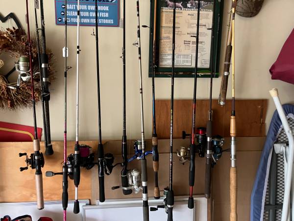 Nice assortment of Spinning & Bait Casting Reels. A couple are new in th box. All work fine. Come pick out what you need CHEAP. Also some rod/reel combo’s Everything ready for fishing